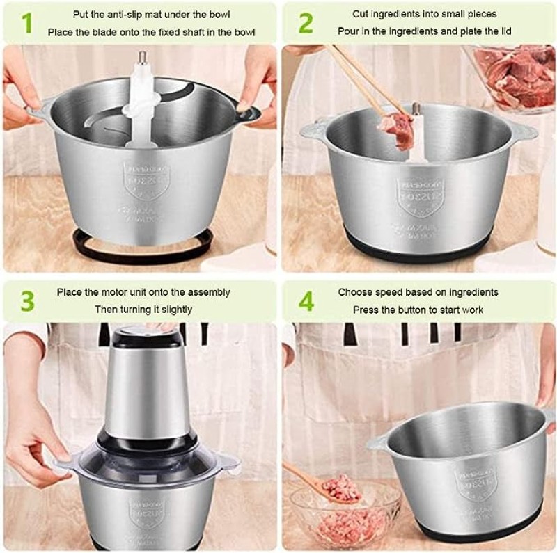 تأتي مفرمة الطعام هذه بوعاء من الستانلس ستيل 304، ما يجعلها متينة ومقاومة للصدمات، وتتميز أيضًا بتصميم قابل للفصل والغسل لسهولة التنظيف. مع وسادة مضادة للانزلاق لزيادة الأمان، يمكنك الاعتماد على هذه المفرمة الطويلة الأمد.